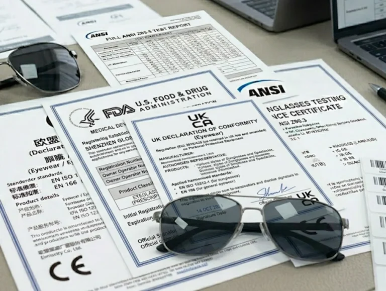 Eyewear regulations differ from market to market. Because we export to the US, EU, UK, Japan, Australia, China and many other regions, we follow multiple standards depending on customer requirements. Below is a full overview of international standards, explained based on our real production and QC workflow in Wenzhou.